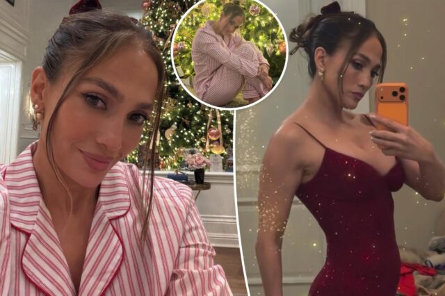 Дженнифер Лопес встречает Рождество в облегающих блестках и праздничной пижаме
