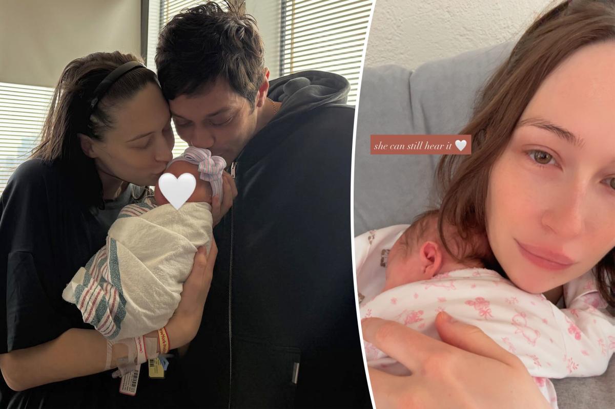 В субботу модель была сфотографирована прижимающей новорожденного к груди на селфи в Instagram Stories. «Она все еще слышит это», — написал Хьюитт над фотографией рядом с смайликом в виде белого сердца.