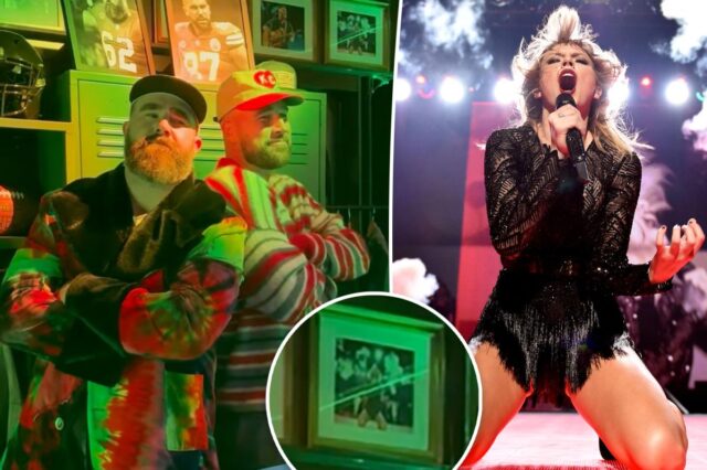 В среду зоркие фанаты заметили фотографию певца в рамке на стене на вечеринке Джейсона и Трэвиса Келси в честь Супербоула для их подкаста «New Heights».