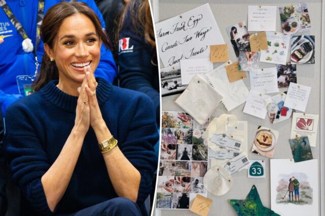 Бывшая 43 -летняя актриса «Костюмы» дала дальнейшее представление о ее ребрендинге со своей доской, которая включала в себя фотографии домашней еды, рисунок ее и ее мужа, принца Гарри и рукописные заметки от их детей, принц Арчи, 5 лет, 5 лет, и принцесса Лилибет, 3.