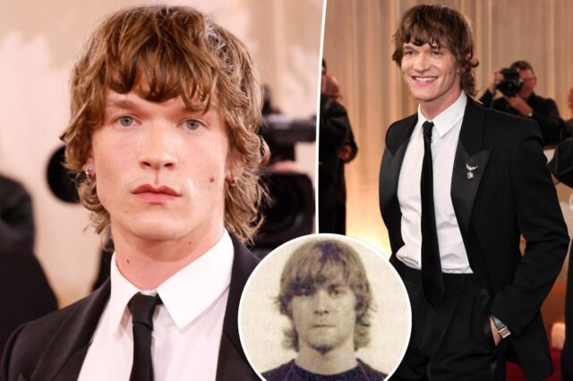 4. Звезда «Жаркого соперничества» Коннор Сторри в воскресенье появился на красной дорожке «Золотого глобуса 2026» в стиле ретро. Парикмахер FilmMagic 4 Кэндис Бирнс наткнулась на фотографию Курта Кобейна 1986 года и была вдохновлена ​​его пернатым видом. Гетти Изображения