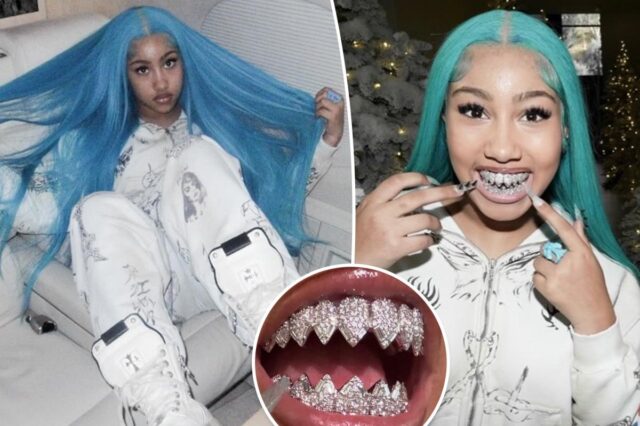 12-летняя дочь Ким Кардашьян и Канье Уэста поделилась своим третьим постом в Рождество. Он включал в себя карусель фотографий, на которых подчеркивались не только ее длинные синие волосы, но и ее, казалось бы, новый бриллиантовый гриль в форме акулы.