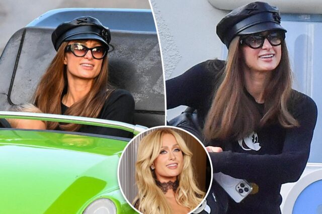 Пэрис Хилтон попыталась — и потерпела неудачу — остаться инкогнито в парике брюнетки и больших солнцезащитных очках во время семейной поездки в Диснейленд.