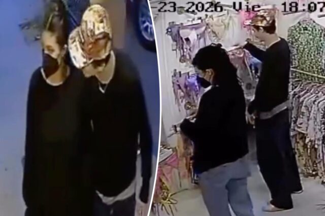 Звезда «Марти Суприм», похоже, подтолкнула своего партнера, который вёл себя сдержанно в чёрном свитере, маске и джинсах, зайти в магазин купальных костюмов.