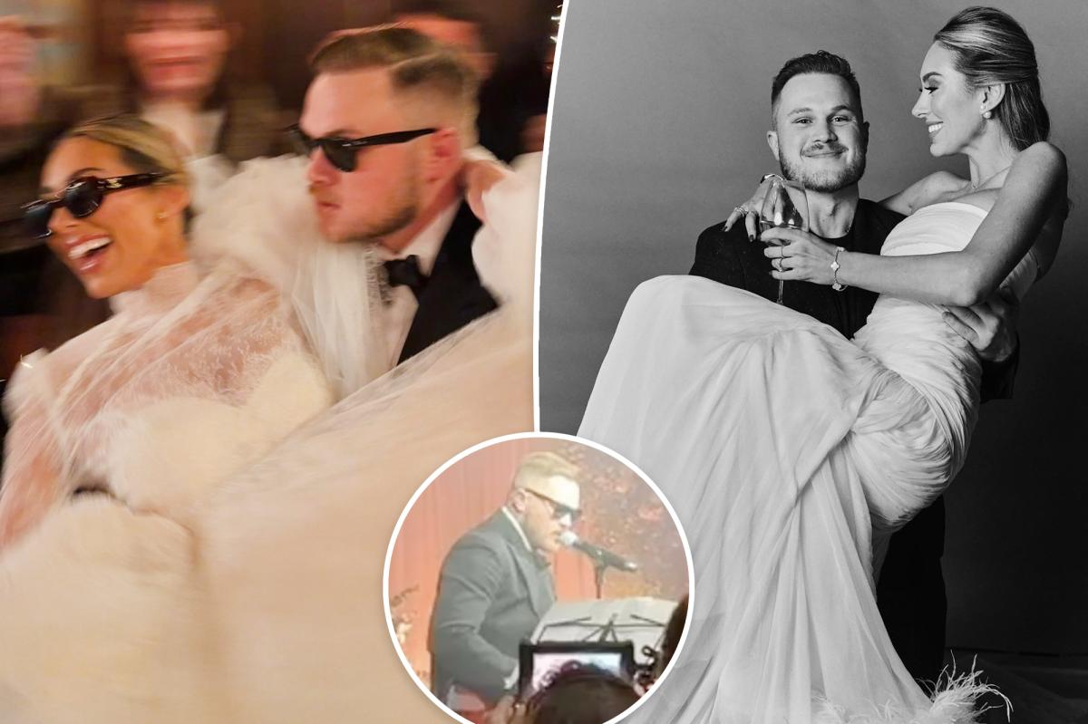 8. Зак Брайан взглянул изнутри на свою шокирующую свадьбу с Самантой Леонард. stefanmax/Instagram 8 Звезда кантри-музыки поделился публикацией, на которой он держит свою новую жену, которая ошеломляла в белом платье без бретелек с отделанным перьями подолом. zachlanebryan/Instagram Узнайте больше Зак Брайан, как сообщается, женится на Саманте Леонард в Испании после бурного романа Рэйчел Учитель, чтобы сказать «Да» в Палм-Бич с винтажным стилем Нью-Йорка Глен Пауэлл и Мишель Рэндольф «движутся очень быстро»: «Это так мило»